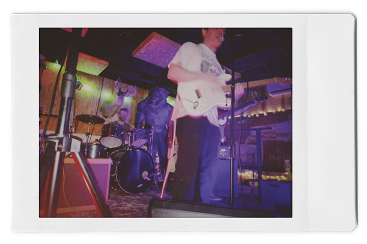 I could already hear a band playing walking into the room. There were a lot of people! Maybe the most I’ve ever seen. I zig zagged my way up through the crowd to the front to see Savannah band Chipper Bones for the first time. I recognized the singer/guitarist, Kyle Brown, from booking shows under the name Dog Days Presents.